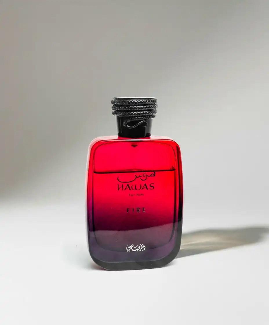 This is a new fragrance. Hawas Fire was launched in 2025. Top note is Clary Sage; middle notes are Egyptian Jasmine and Marine notes; base notes are Amber, Mineral notes and Ambergris.