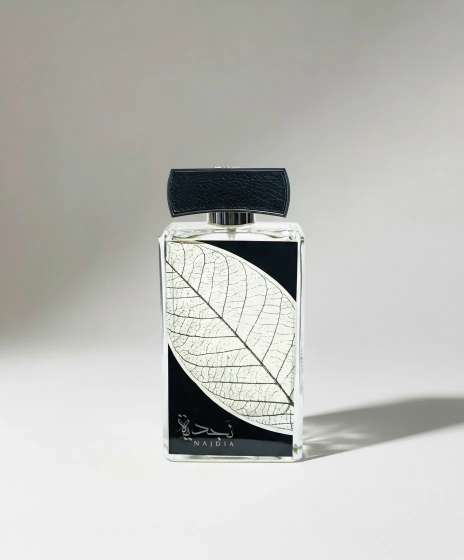 Najdia was launched in 2020. Top notes are Lemon, Cinnamon, Apple, Lemongrass and Bergamot; middle notes are Watery Notes, Lavender, Cardamom and Rosemary; base notes are Musk, Amber, Sandalwood, Cedar and Tobacco.