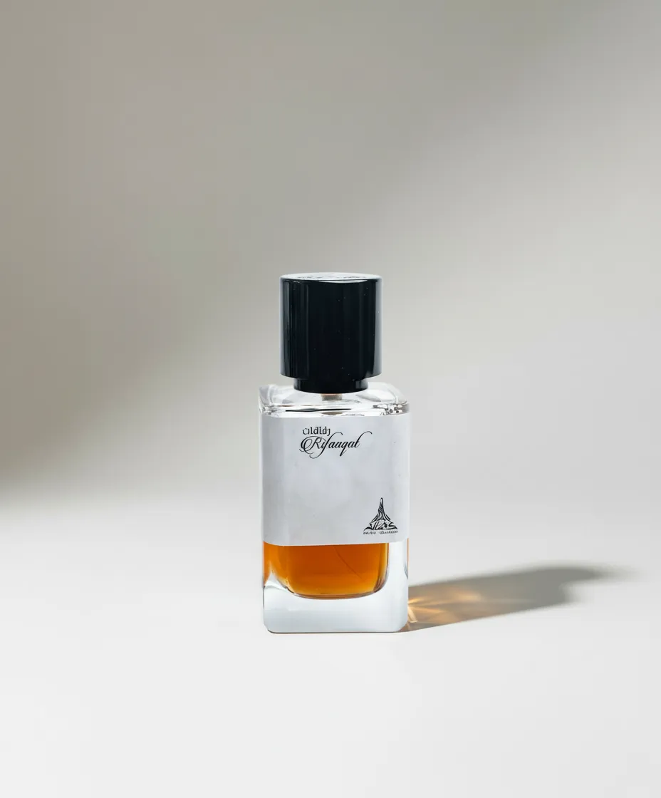 Rifaaqat was launched in 2023. Top notes are Black Pepper, elemi and Pink Pepper; middle notes are Olibanum and Saffron; base notes are Vanilla and Cedarwood.